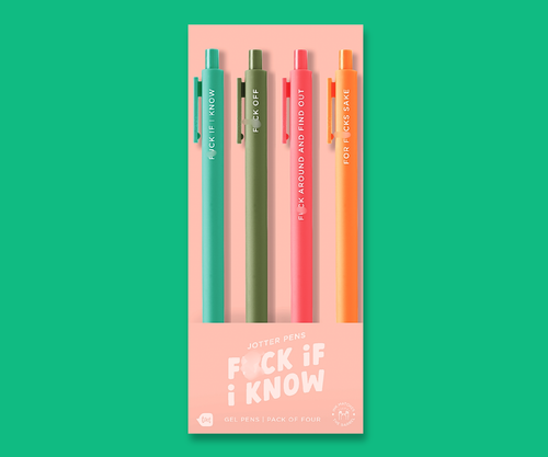 'F*CK IF I KNOW' GEL JOTTER PENS 4-PACK COLLECTIONS FUNNY SWEARY SARCASTIC